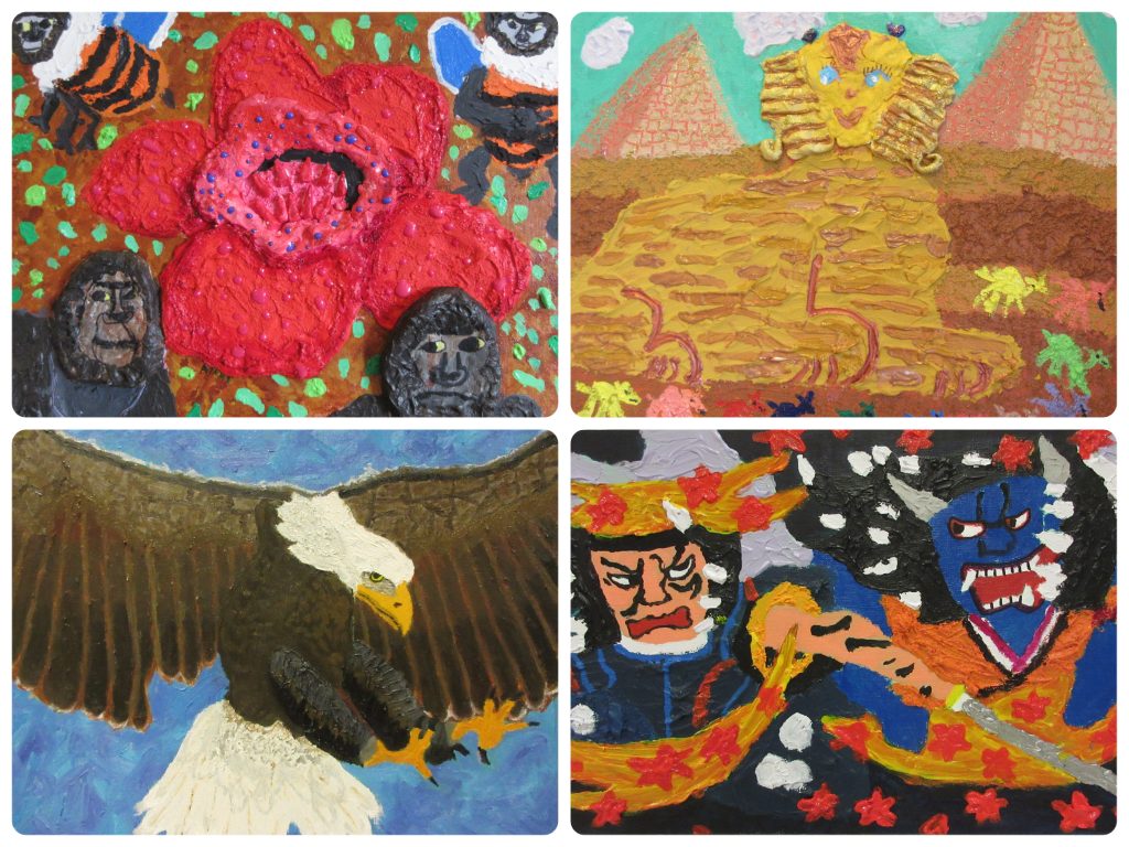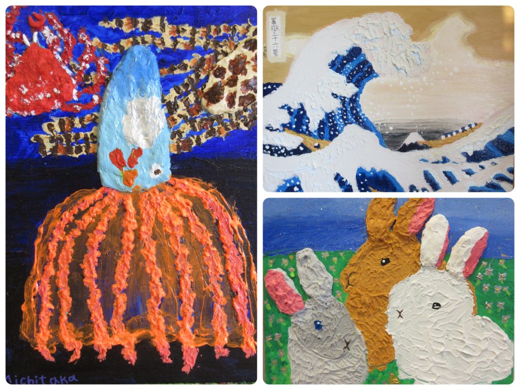 下地として紙粘土で盛り上げているので、立体的で愛らしい名画がたくさん誕生したよ。